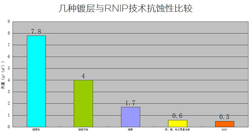 3、RNIP技術(shù)能極大地提高金屬工件的耐蝕性,按GB/T10125-1997標(biāo)準(zhǔn)進(jìn)行鹽霧試驗(yàn),經(jīng)RNIP技術(shù)處理后,工件抗蝕性大于180個(gè)小時(shí),最高可達(dá)700個(gè)小時(shí)。